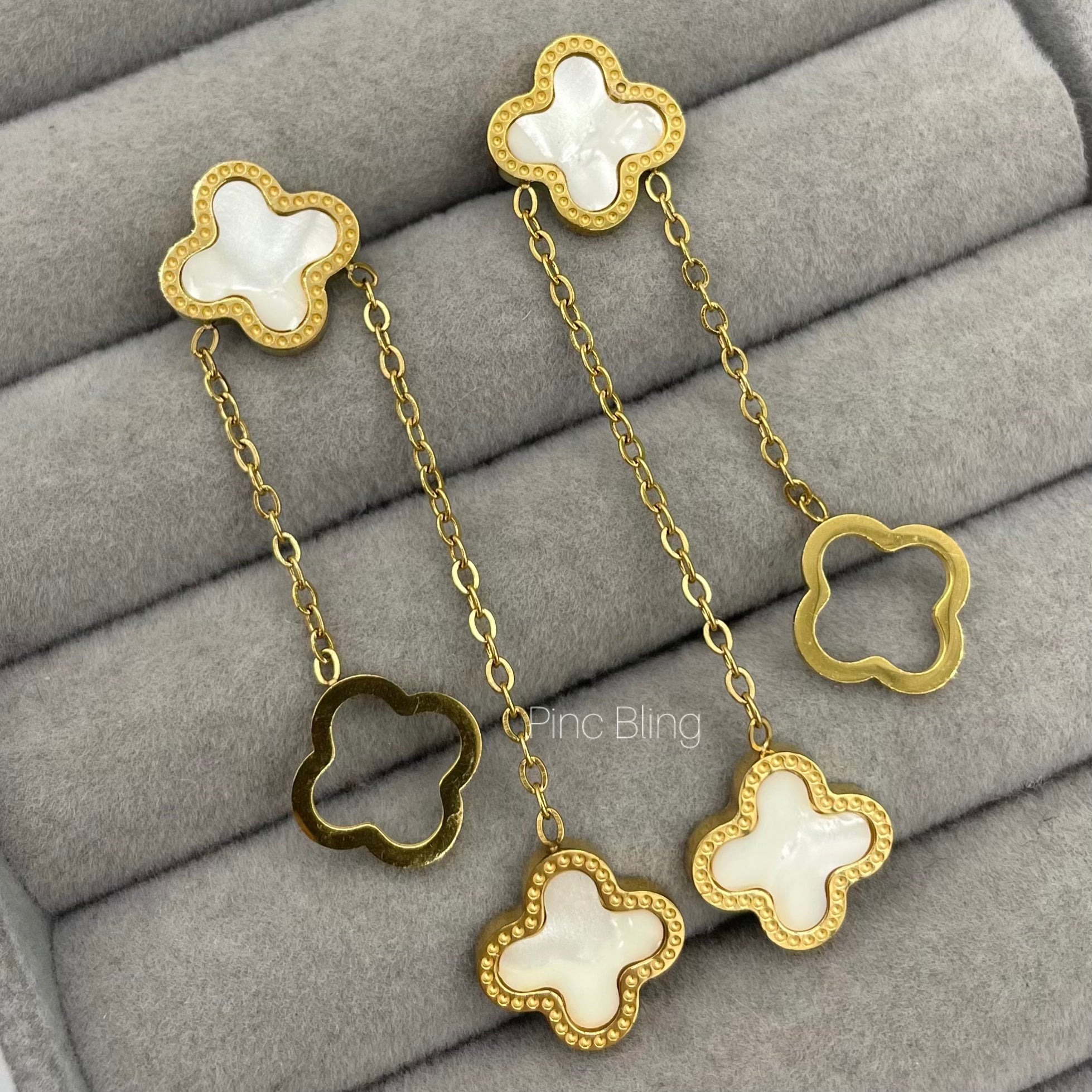 Clover hanging earrings (white)