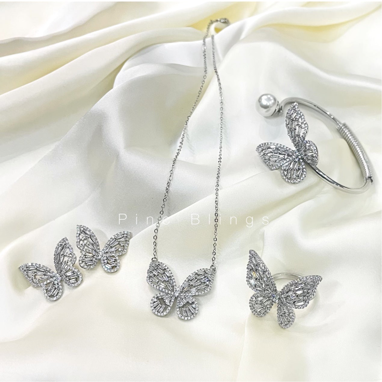 Beautiful butterfly set made with zircons includes: